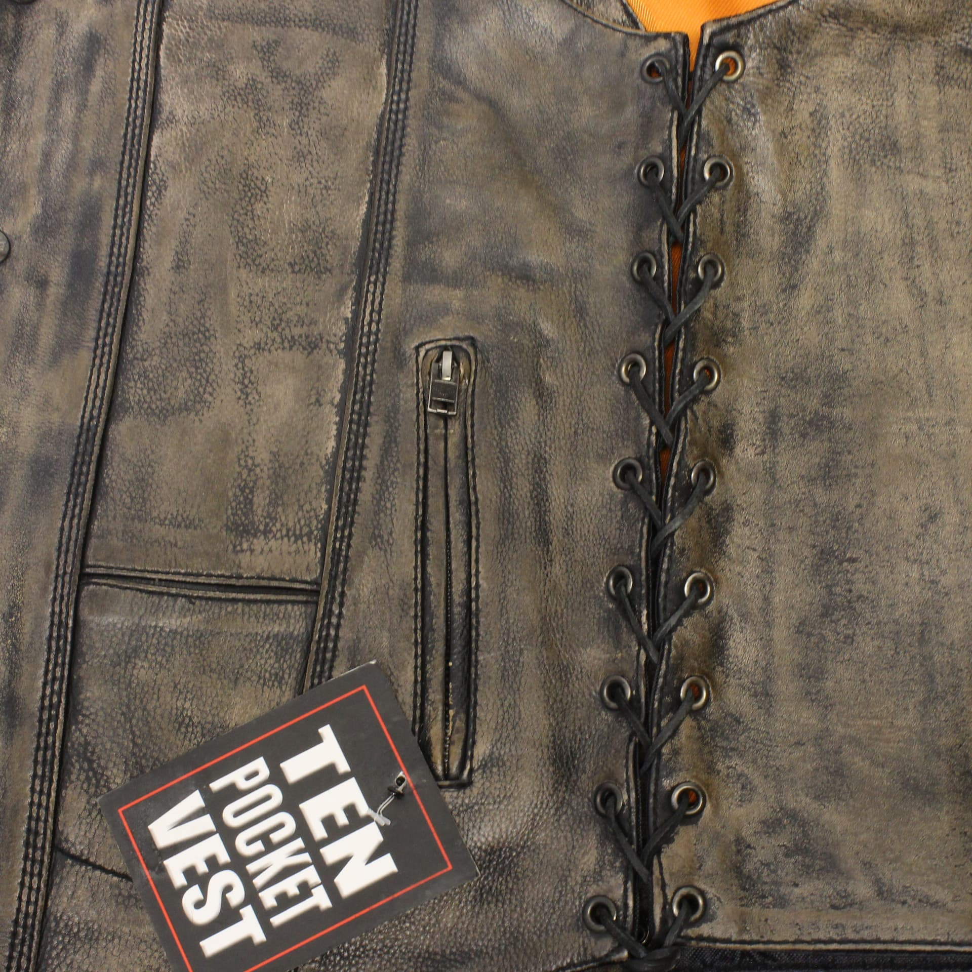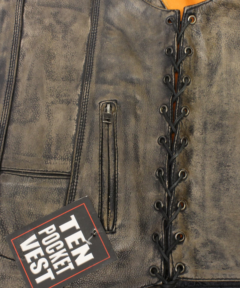 Mens 10 Pockets Brown Naked Cowhide Distressed 1.5mm Leather Gun Pocket Vest