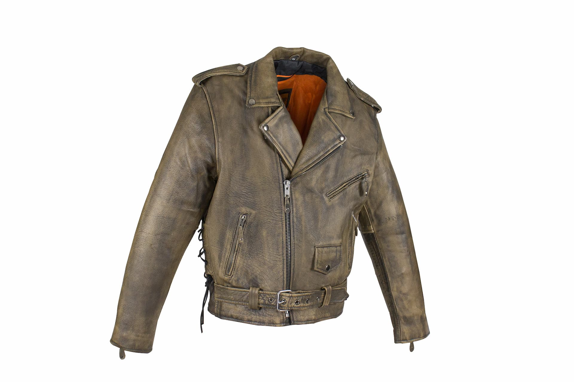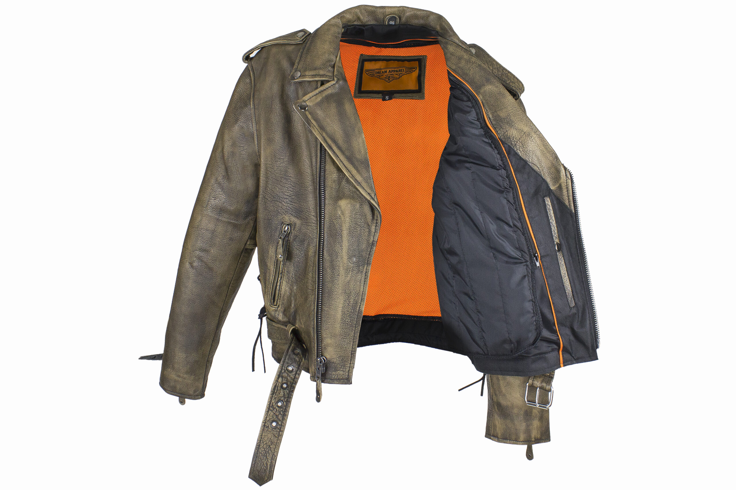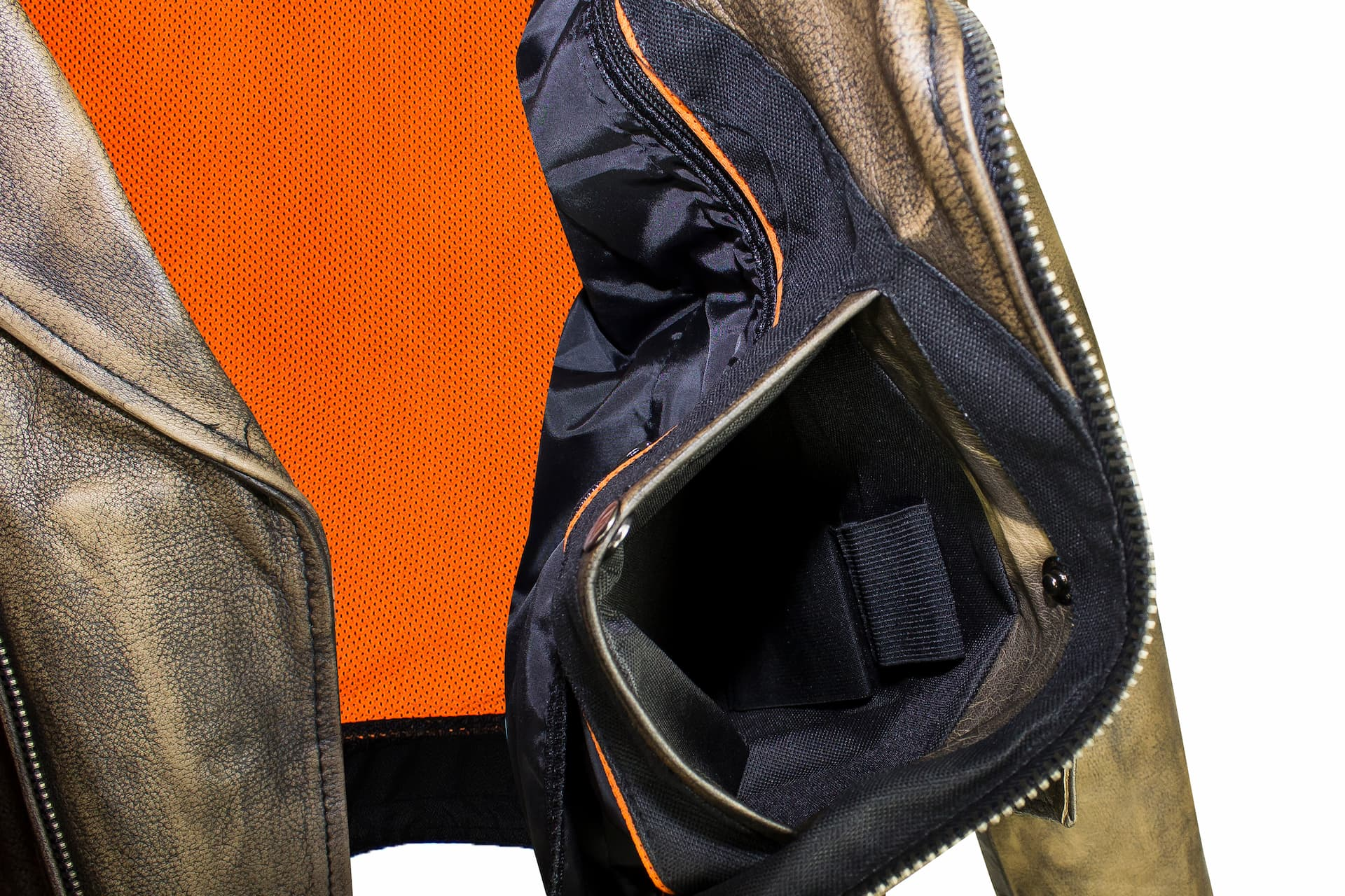 Men’s Distressed brown Jacket with Gun Pockets and air vents