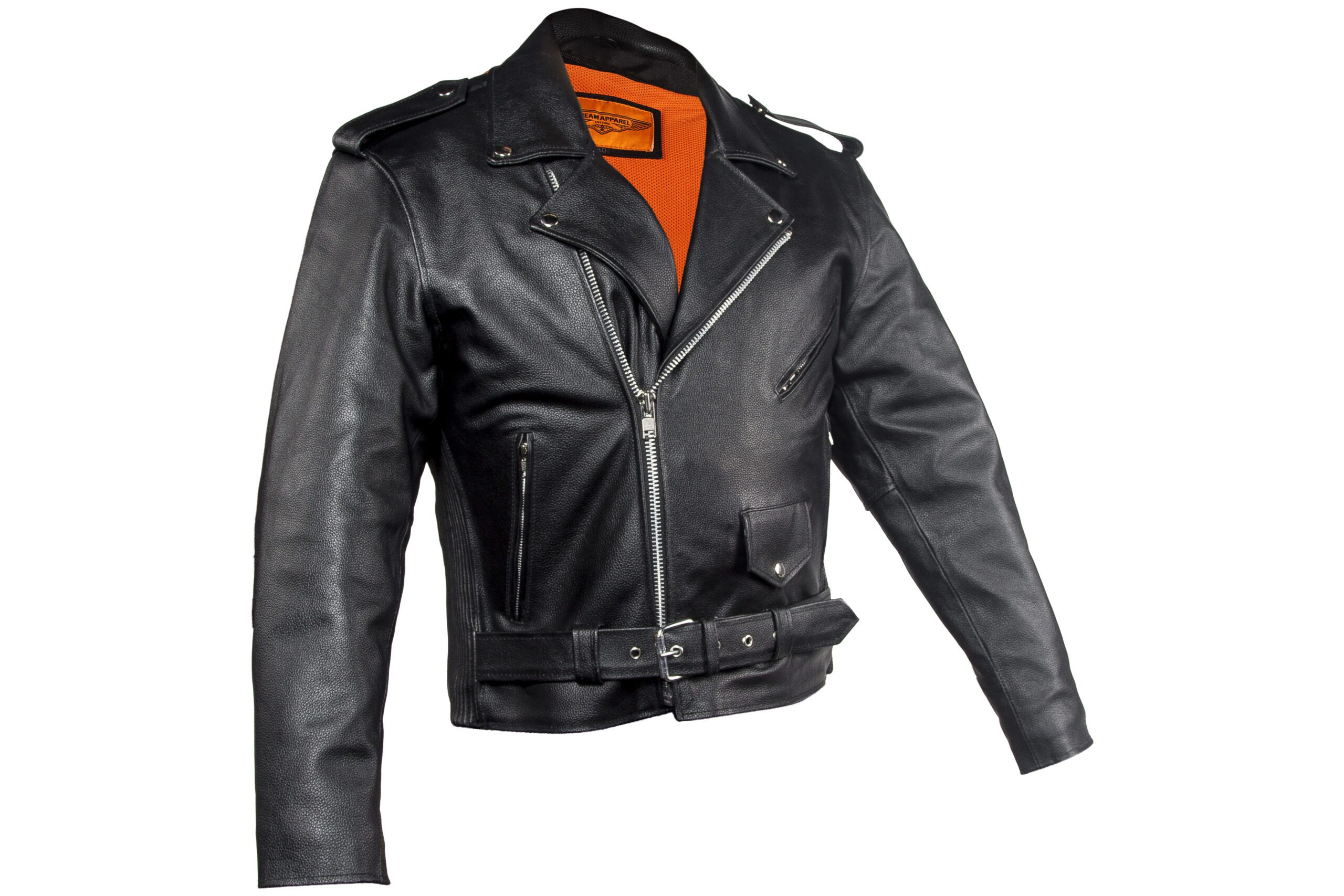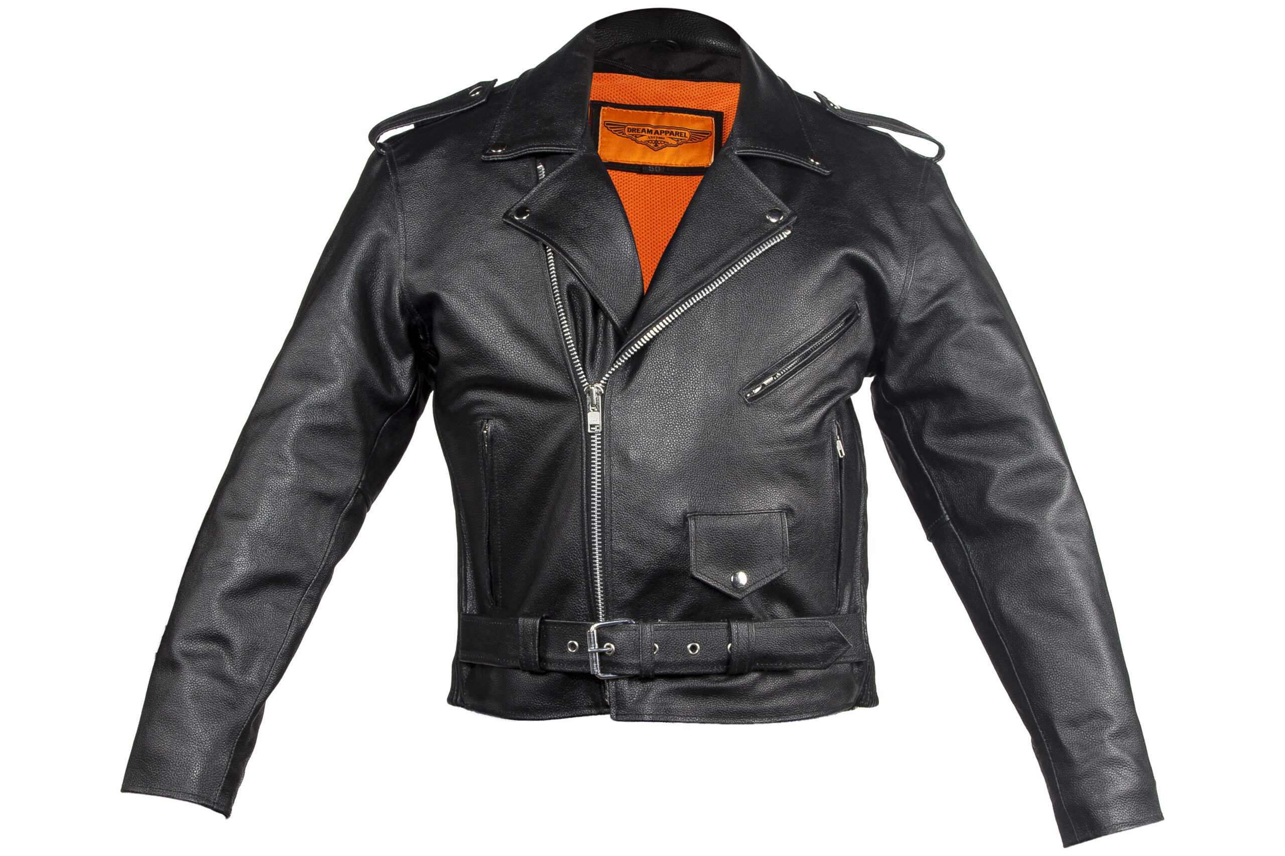 Men’s Naked Cowhide Leather Jacket With Snapdown Collar and Belt