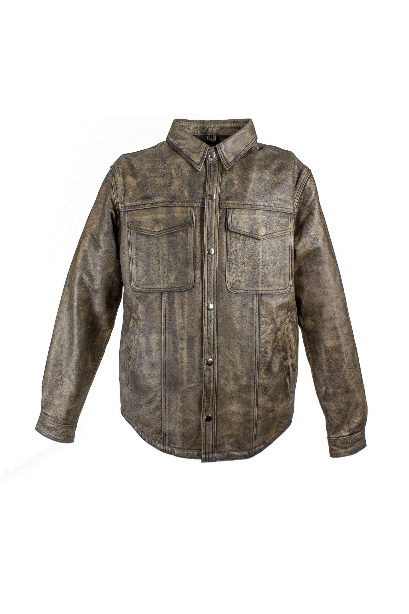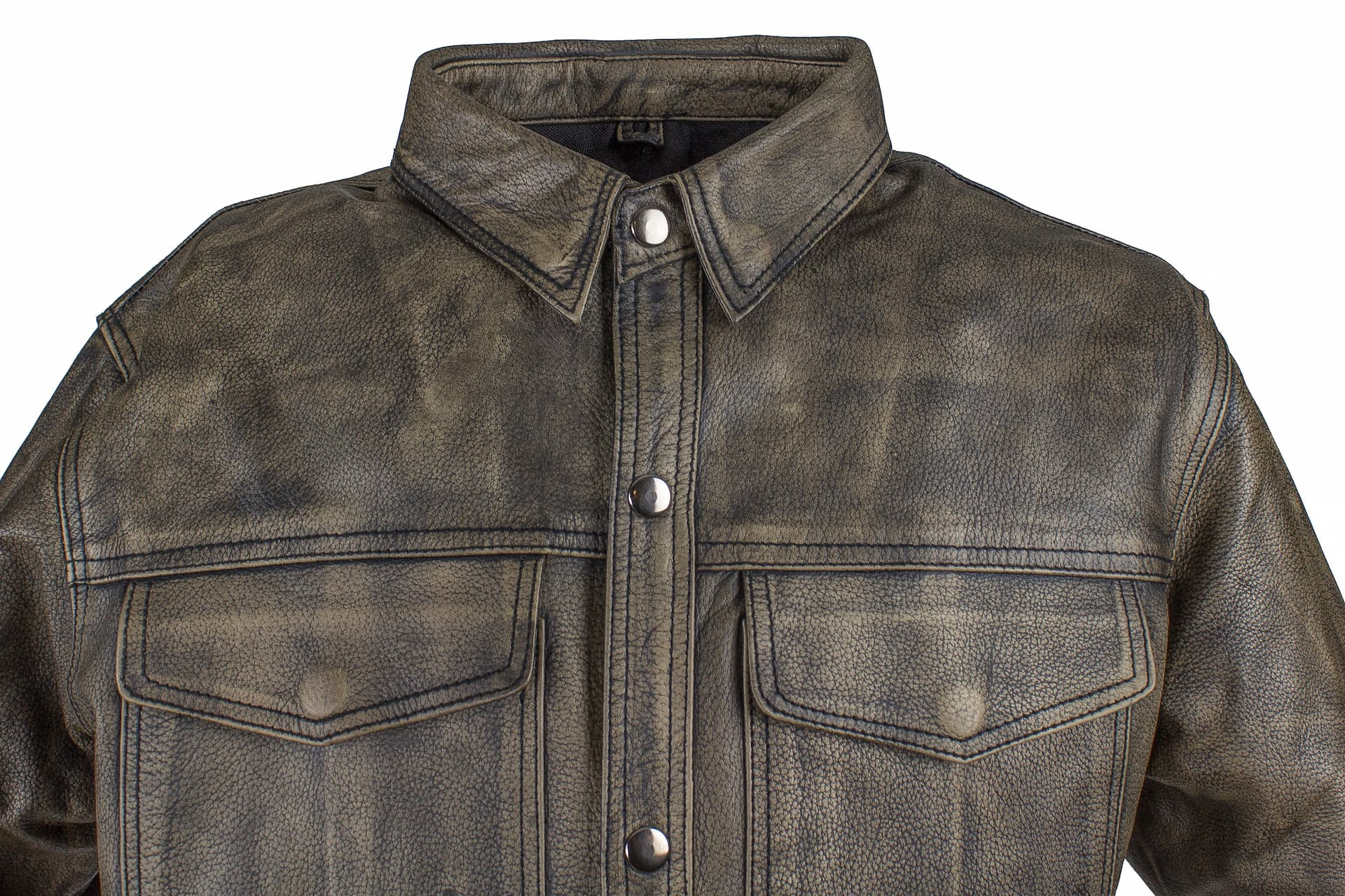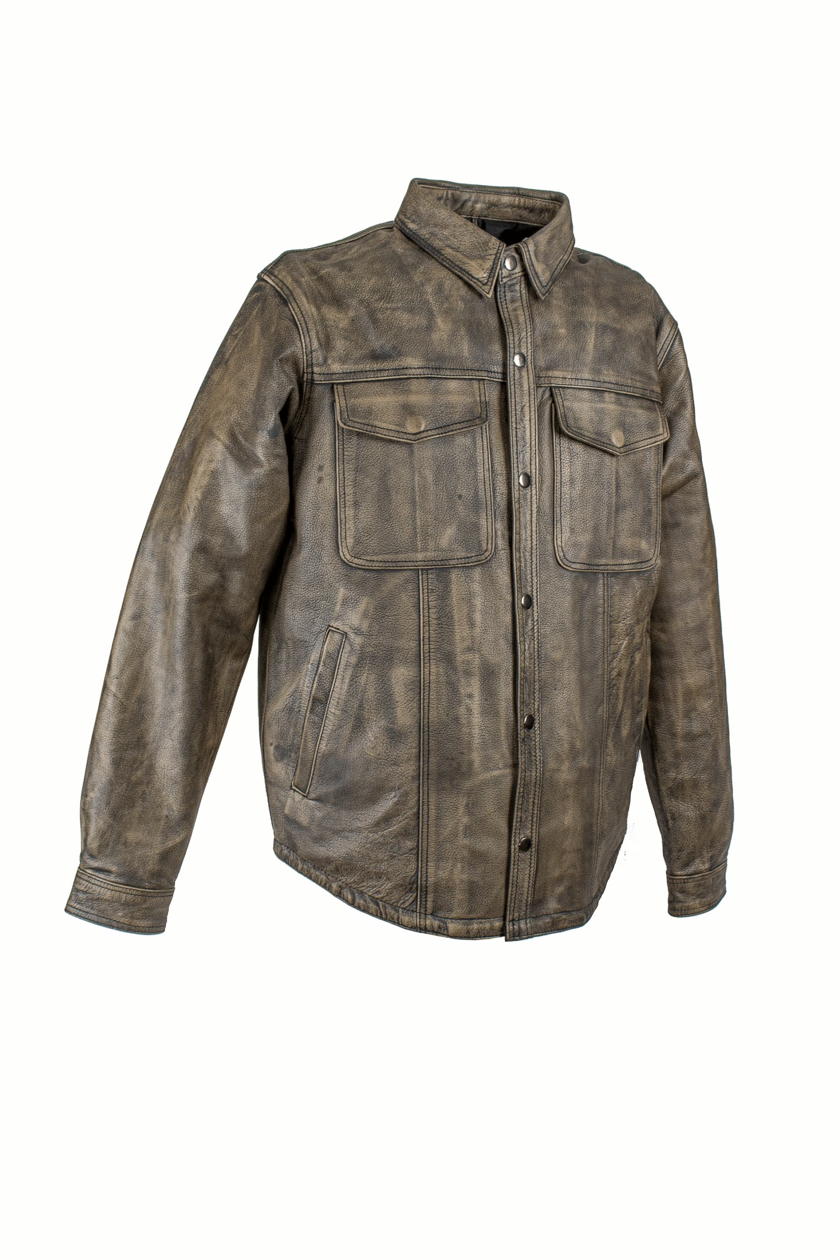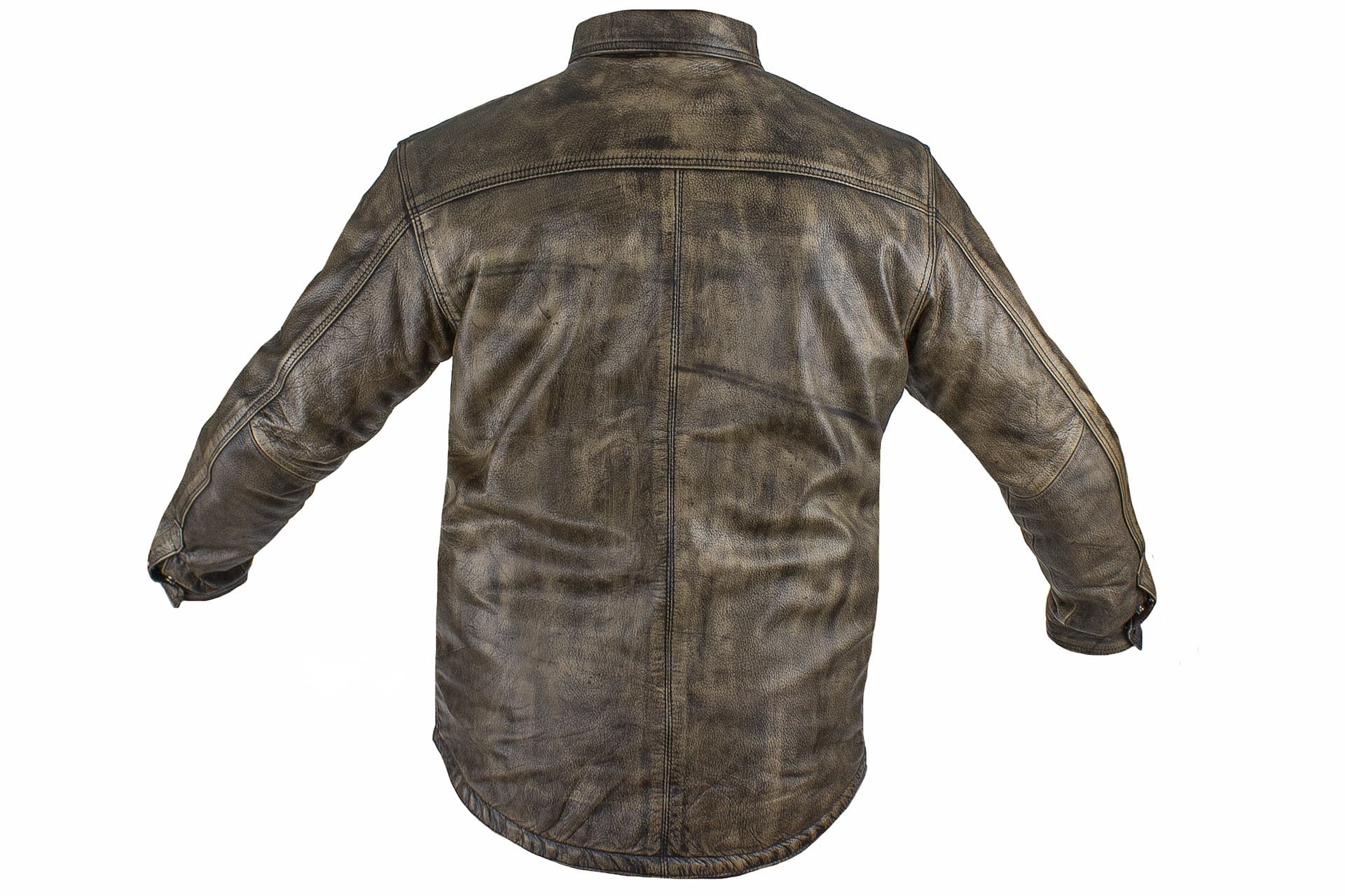 Men’s Distressed Brown Leather Long-Sleeve Shirt