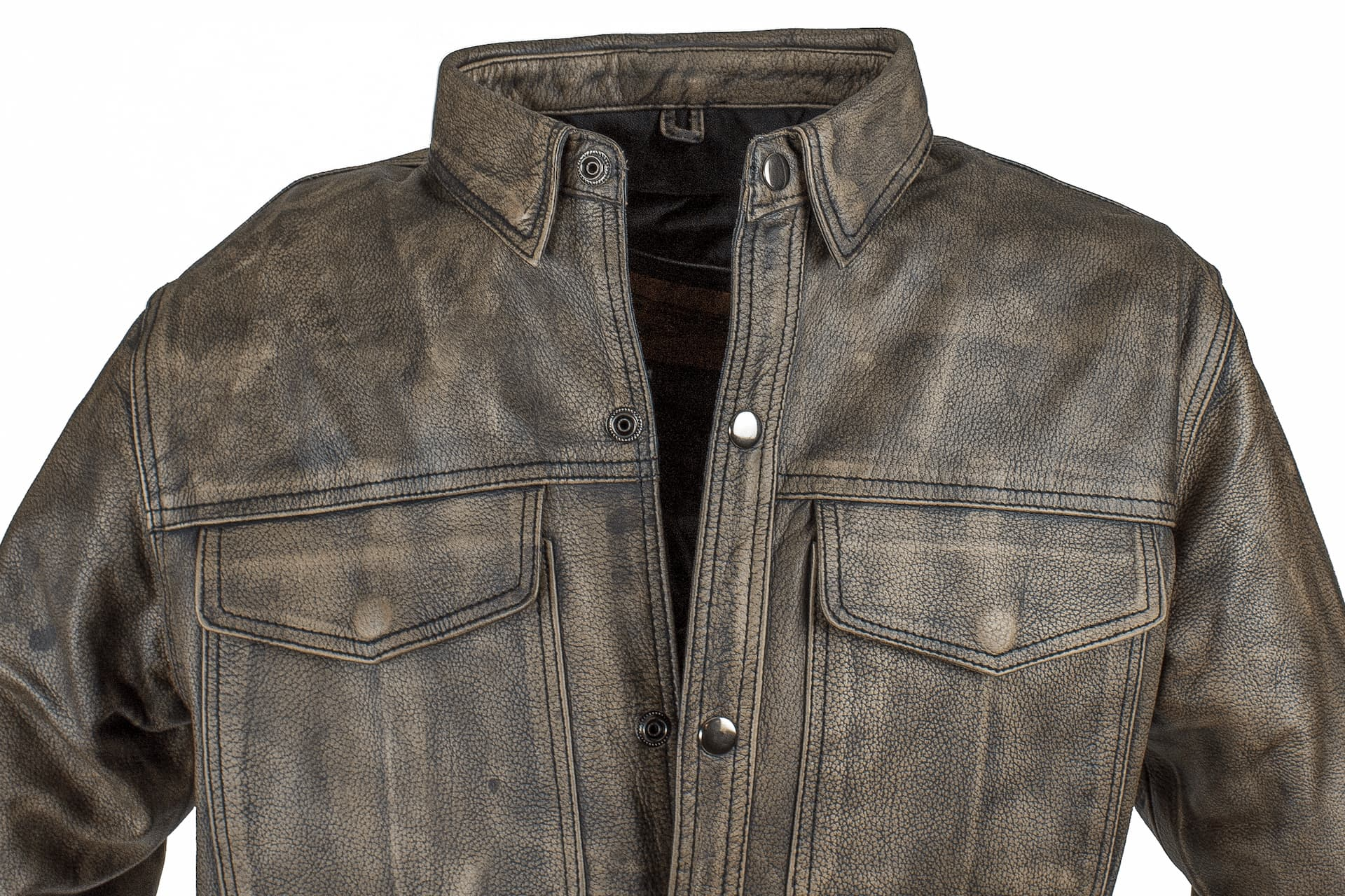 Be the first to review “Men’s Distressed Brown Leather Long-Sleeve Shirt” Cancel reply