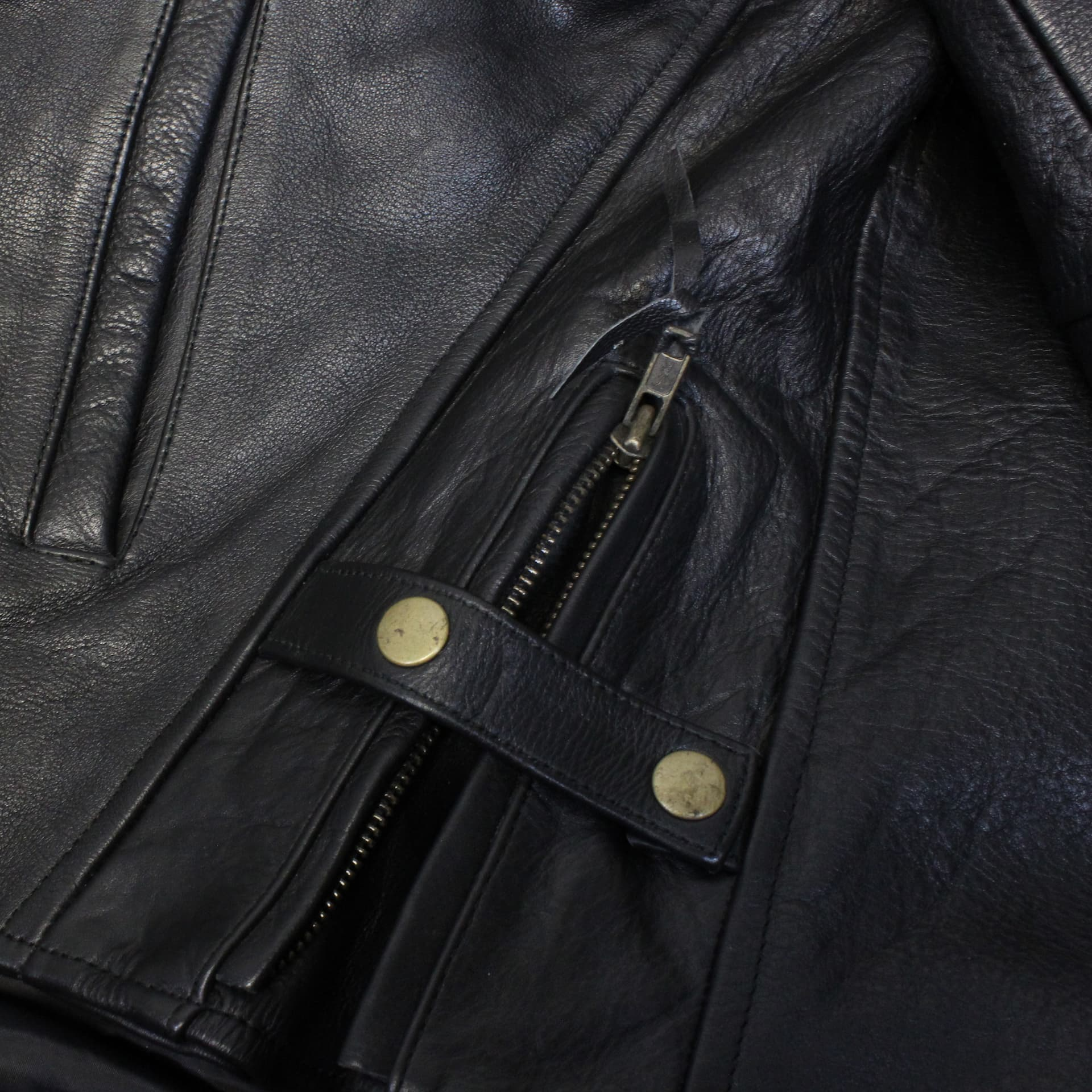 Mens Biker Top Grain Heavy Naked Cowhide 1.5mm Black Motorcycle Leather Jacket